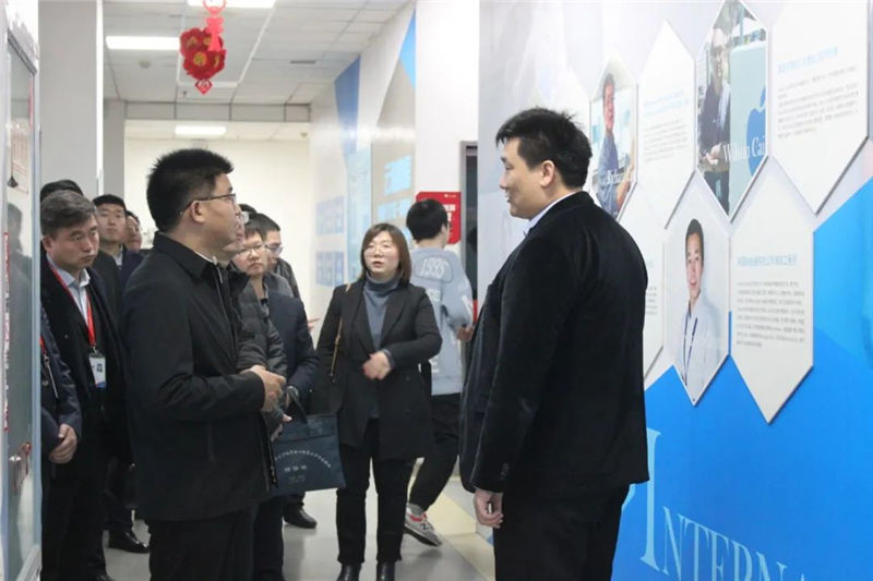 云和数据董事长总经理郭总向闫院长一行介绍了云和数据的创立初衷、公司的发展历程、运营模式、四大事业部、战略规划和所获荣誉资质等情况,并同各位领导一起参观了办公区、技术体验中心和教学区等区域。