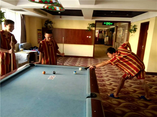 泡舒服了,打个台球,健个身,这销魂的姿势,也没谁了~~中午更有各种美食等你,这赶脚,爽!