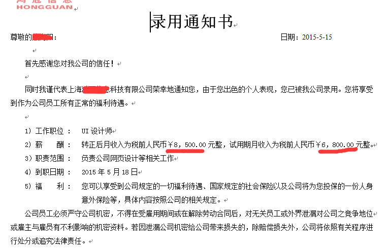 好消息很快传来,仅一周的时间就有七八位同学已经成功收到了offer,并于今天就开始上班了!试用期薪资基本都在6千以上,转正后8千以上,UI设计班刘兰同学凭借在云和学院学到的扎实技术,取得试用期8千的高薪资。真是祝贺你们,你们都很棒,为你们点赞,继续加油!