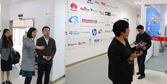 吕伟一行首先参观了云和数据共青团青年创业就业导师咨询室与郑州青年创业就业企业联盟。该联盟由云和数据与郑州团市委联合成立,依托云和数据旗下高端IT职业教育品牌云和学院为青年团员提供Java、PHP、Android、Unity、HTML5开发,UI设计和电子商务全网营销等IT专业技能培训并向联盟企业输送,吕伟对云和数据的专业实力表示肯定。在随后对云和学院教学区的参观中,吕伟听取了云和数据与郑州团市委联合开展电商行业特色人才培养与组织建设、活动开展的情况汇报,对云和数据与郑州团市委相关工作成绩给予了肯定和赞扬。